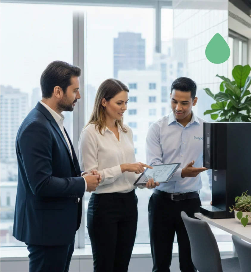 Analizamos tu espacio, flujo de personas, calidad del agua y objetivos de la empresa para recomendar la solución Purepoint más adecuada.